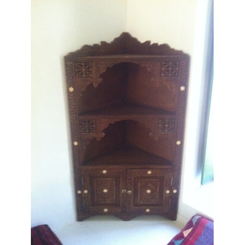 Corner shelf in wood inlaid with mother-in-pearl